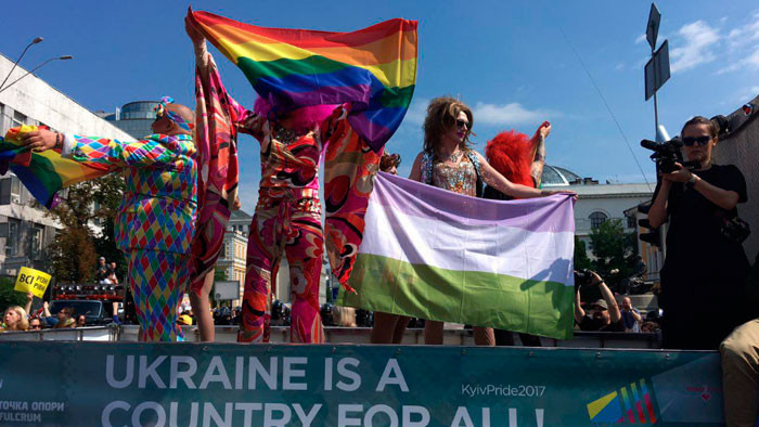 Около 3 тысяч человек, по оценкам полиции, приняли участие в "Марше Равенства" в столице Украины Киеве. Без столкновений с гомофобами и националистами не обошлось.