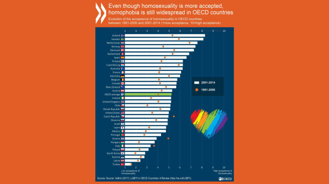Несмотря на сдвиг в сторону большего принятия ЛГБТ-граждан, в большинстве стран ОЭСР все еще распространена гомофобия, говорится в сообщении по итогам комплексного статистического исследования, результаты которого будут представлены на семинаре в штаб-квартире ОЭСР в Париже в начале июля.