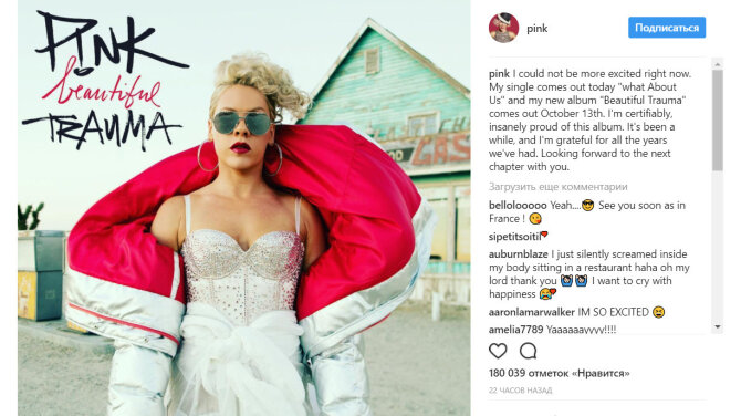 Радужные новостиPink вернулась! И она "невероятно горда" новым альбомом