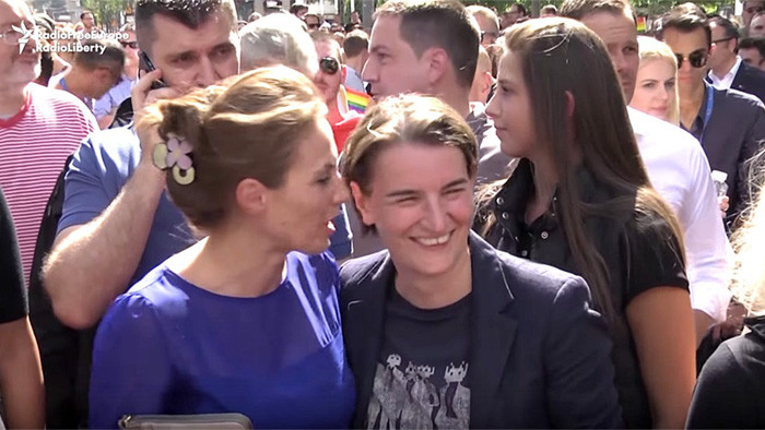 Премьер-министр Сербии 41-летняя Ана Брнабич (Ana Brnabić) вместе с другими представителями власти, среди которых два члена правительства и мэр столицы Синиша Мали (Siniša Mali), вчера прошли в колоннах гей-парада.