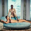 На серии фотографий женщины позируют в деловых костюмах, а обнаженные мужчины, если присмотреться, выполняют функцию реквизита, не более того.