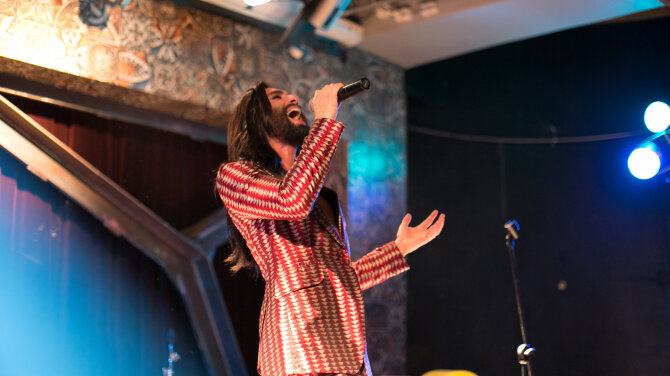 Кончита Вюрст еще раз появилась перед петербургской публикой на заключительной вечеринке кинофестиваля "Бок о Бок" в клубе The Place. Уже после полуночи дива в шикарном костюме взошла на клубную сцену и спела несколько своих хитов. А 10-й ЛГБТ-кинофестиваль, в ходе которого не было никаких негативных ситуаций, завершился при рекордном аншлаге, но самое главное - в ощутимой атмосфере любви, принятия и солидарности.