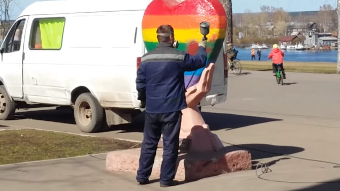 В Сыктывкаре парковой скульптуре в виде сердца, накануне перекрашенной неизвестными в цвета ЛГБТ-флага, оперативно вернули грязно-коричневый цвет. В социальных сетях пишут, что скульптура в парке имени Кирова долгое время имела печальный вид - сколы и разные надписи.