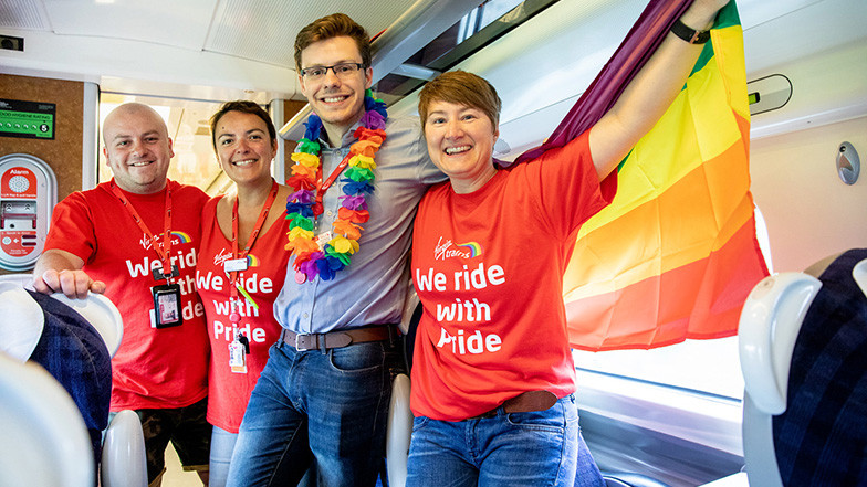 Virgin Trains, железнодорожная компания в Великобритании, накануне месяца прайдов объявила о своем проекте #RideWithPride. Его главное событие - выход на маршруты нового радужного поезда, который будет ходить по стране в течение лета.