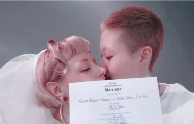 19-летняя Чжолинь выложила фотографию, где они с 31-летней Отом держат сертификат о браке, где написано, что свадьба прошла 8 ноября в Торонто.