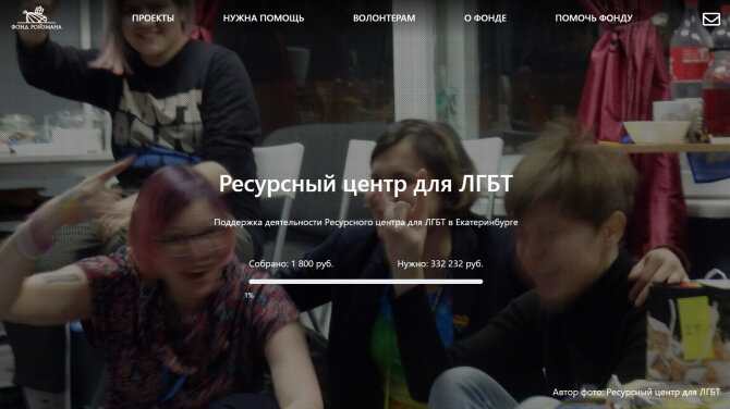 В начале года Благотворительный фонд Евгения Ройзмана начал сбор средств в поддержку Ресурсного центра для ЛГБТ в Екатеринбурге.