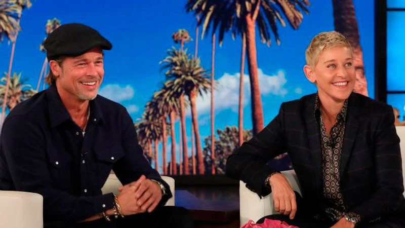 Эллен ДеДженерес и Брэд Питт обсудили общих подружек, когда актер пришел на шоу "любимой лесбиянки Америки", чтобы представить картину "Однажды в Голливуде".