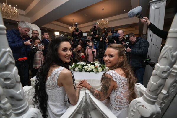 11 февраля в 14:00 в Белфасте состоялось первое официальное бракосочетание однополой пары. Свадьбу сыграли 26-летняя Робин Пиплз и 27-летняя Шарни Эдвардс (Robyn Peoples, Sharni Edwards). Церемония прошла в отеле Loughshore, сообщает PinkNews.