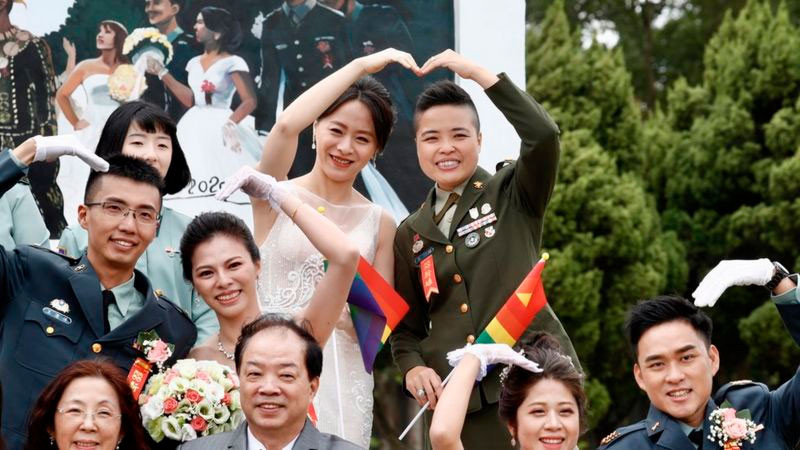 Две лесбийские пары впервые сочетались браком в ходе традиционной массовой брачной церемонии в армии Тайваня.