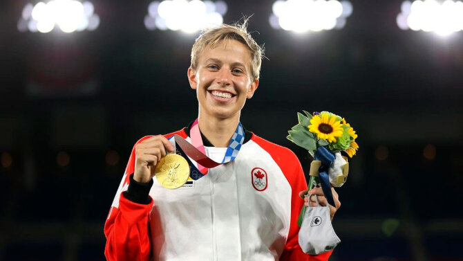 Звезда канадского футбола Ребекка Куинн вошла в историю, став первым трансгендером, завоевавшим олимпийскую медаль.