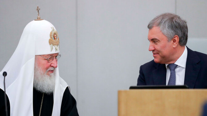 Гундяев пожелал Володину "доброго здравия, бодрости духа, помощи Божией и успехов в дальнейших трудах на благо страны".