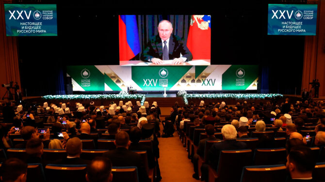 28 ноября Владимир Путин в формате видеоконференции выступил на пленарной сессии Всемирного русского народного собора, сообщает официальный сайт Kremlin.Ru, добавляя, что центральная тема форума, посвященного 30-летию образования организации, - "Настоящее и будущее Русского мира".