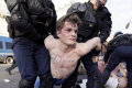 Мужчины, обнаженные по пояс, с лозунгами, написанными прямо на теле, выступали против однополых браков во Франции. Эта группа называет себя Les Hommen и крайне недовольна решением французских парламентариев и президента разрешить гомосексуалам вступать в браки и усыновлять детей. Сообщая об этом, Gay Star News...