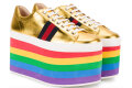 Gucci представил золотые прайд-сникерсы на радужной танкетке
