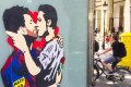 На стене одного из стеклянных киосков в центре Барселоны появилось изображение форварда местной одноименной команды Лионеля Месси (Leo Messi), целующегося с нападающим мадридского "Реала" Криштиану Роналду (Cristiano Ronaldo). Автором граффити под названием "Любовь слепа" стал местный художник Tvboy. Рисунок появился...