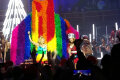 [ВИДЕО] Кайли Миноуг поразила "радужным" платьем на Рождественском шоу в Альберт-холле и спела с Микой