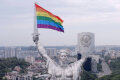[ВИДЕО] За "оскорбление чувств верующих" арестованы польские активисты, водрузившие радужный флаг на статую Христа