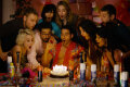 На столе маленький тортик с одной свечкой. Год нашим отношениям.