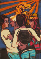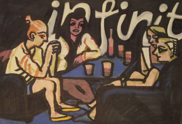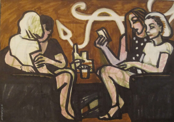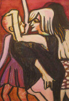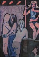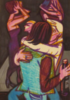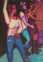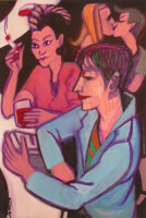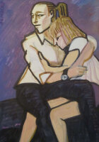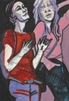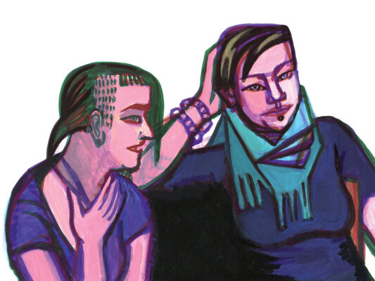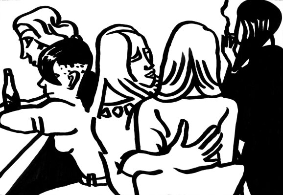 У героинь серии "18+" и у ее зрителей часто возникает вопрос, зачем гетеросексуальная художница рисует лесбийские пары. У меня есть несколько ответов, но самый правдивый - в лесбийских клубах завораживает не столь- ко иная сексуальность, сколько сепаратность женской среды, в которой роль мужчины из центра женской вселенной сведена к нулю. Захватывает возможность показать сложные психологические связи между женщинами. Работ такого ракурса очень мало в искусстве, особенно в российском. В публичной жизни притяжение между женщинами почти никак не проявляется. Делая множество зарисовок в полузакрытых лесбийских клубах, я искала новый визуальный язык - жесты, пластика в лесбийских парах иные, чем в гетеросексуальных.