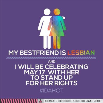 "Моя лучшая подруга - лесбиянка. И я буду праздновать 17 мая вместе с ней, чтобы отстаивать ее права". Сегодня - Международный день борьбы с гомофобией, лесбофобией и трансфобией